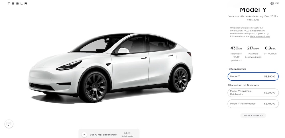 意識到危機的馬斯克,最新「救市」手段,就是在歐洲推出價格較為便宜的後輪驅動新版 Model Y。新車的 WLTP 續航里程為 430 公里,最高速度為 217 公里/小時,0-100 公里/小時加速時間為 6.9 秒,而官網顯示,該車預計交付時間為 2022 年 12 月至 2023 年 2 月。 {{promo_picture}}